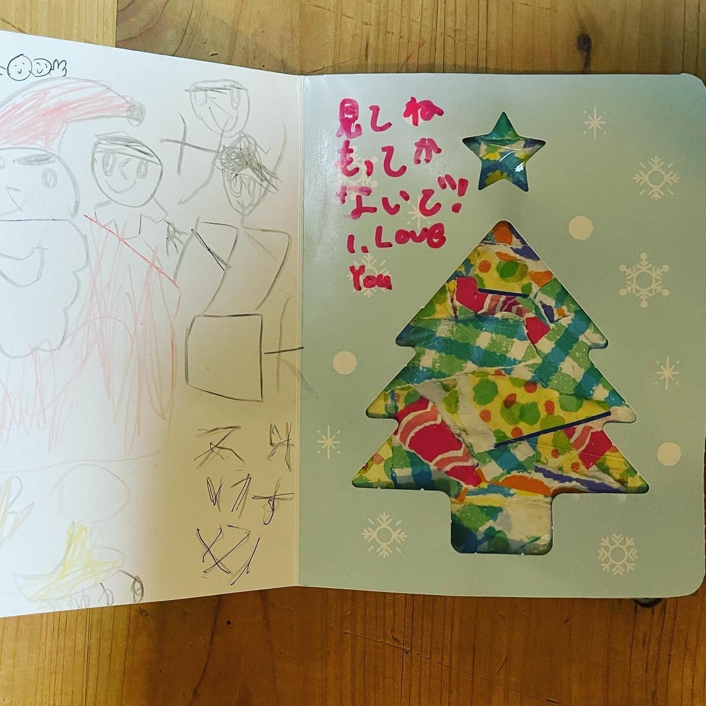 それに、見てもらいたいけど持っていかないで欲しいクリスマスカード😂次男の自信作でお気に入りすぎてあげられないらしい(笑)