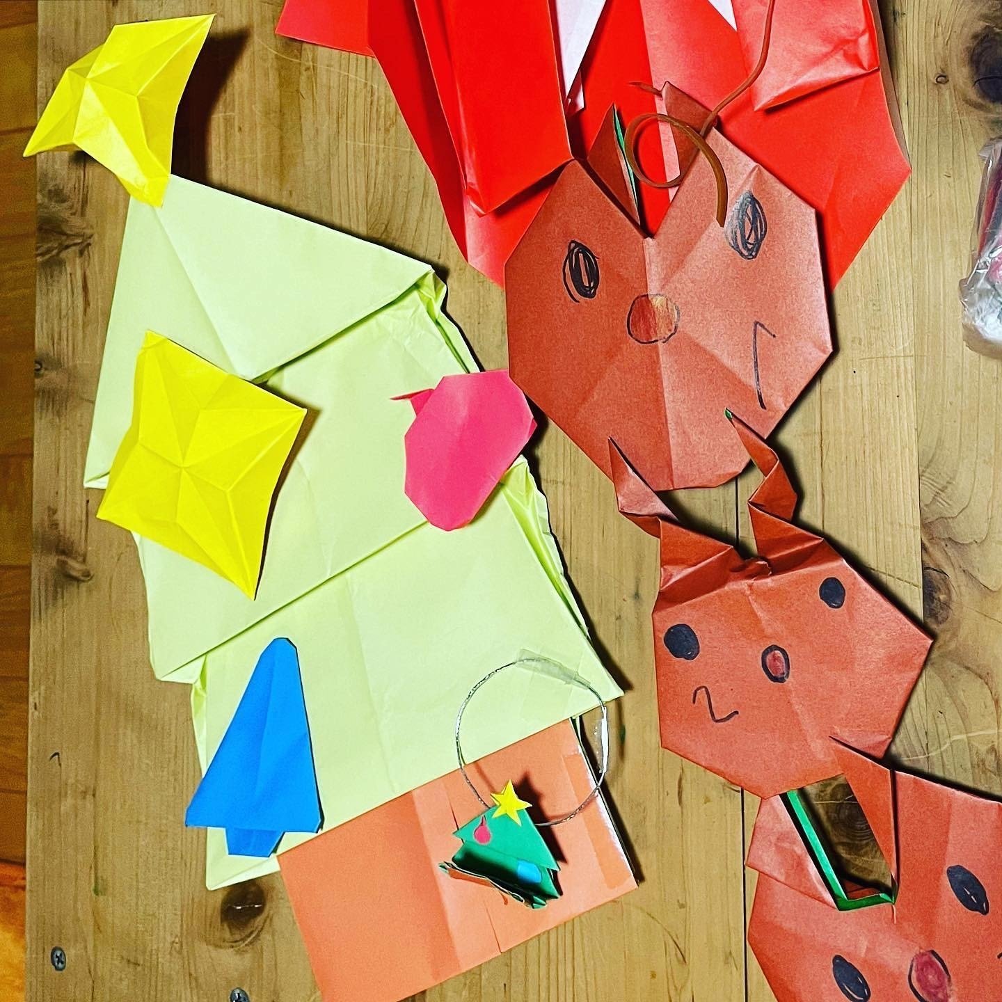 折り紙のお手製ツリー🎄にサンタさん🎅とトナカイたち。