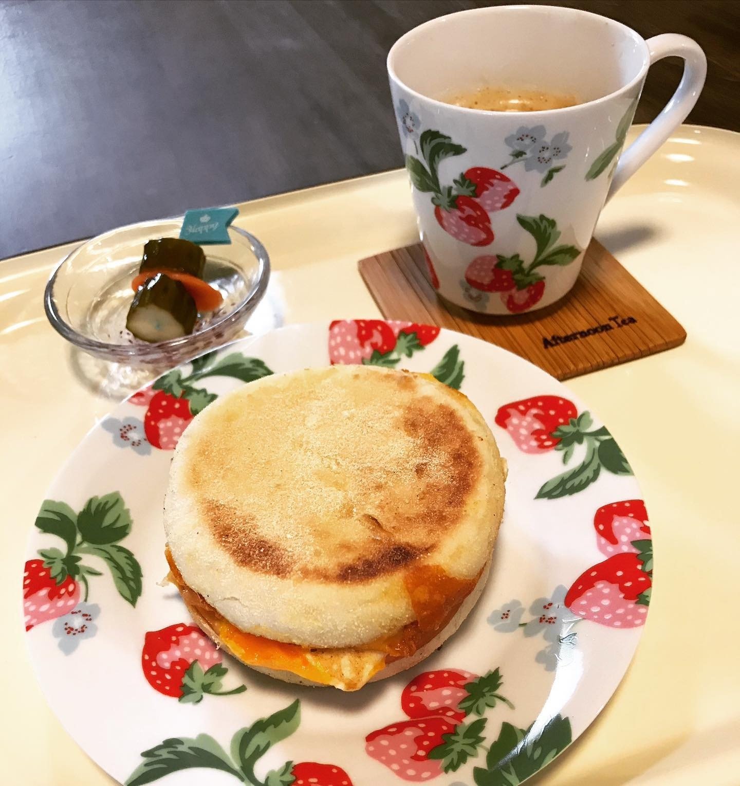 ホッとするひととき 2020年10月15日 ふぅ。子供達が出発してホッとするひととき😇 朝はいつもスムージー🥤を作るので、今日はブルーベリースムージーを飲みながらのスタートでした。 朝ごはんを食べさせて、お弁当を作って、忘れ物確認して、体温を測って、身だしなみチェックして送り出す。難しいことじゃないけど、頭の中が大忙しの朝😆 さぁ、落ち着いたところで、私もしっかり食べちゃうぞー😋 今日はハムエッグチーズマフィン。フライパンひとつで作るから楽なのです🍳むっちゃおいしー😍今日はチェダーチーズをイン🧀