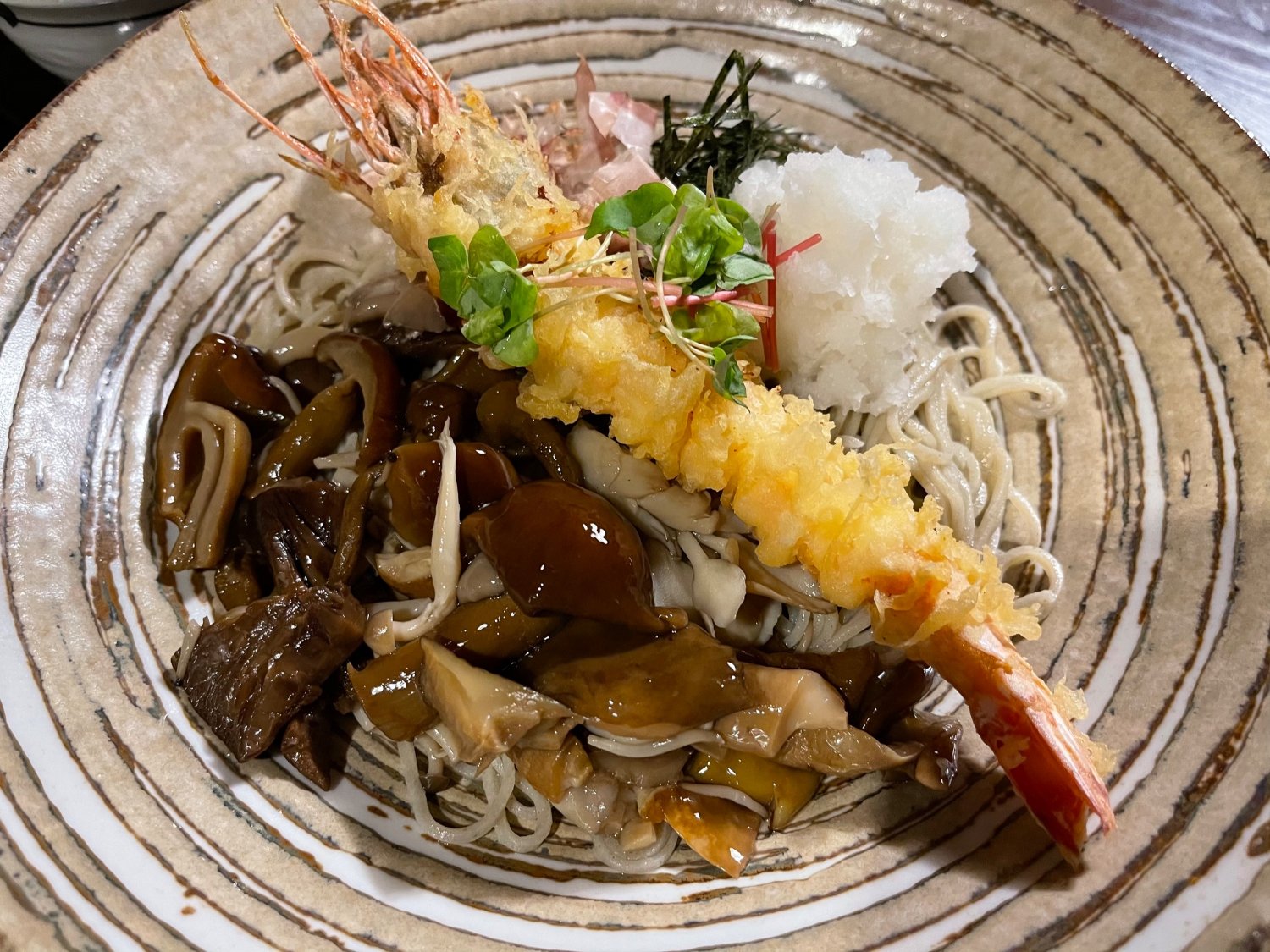 おろし天ぷらそばを注文しましたが、乗っかっていた天然有頭エビの大きさにびっくり❗️