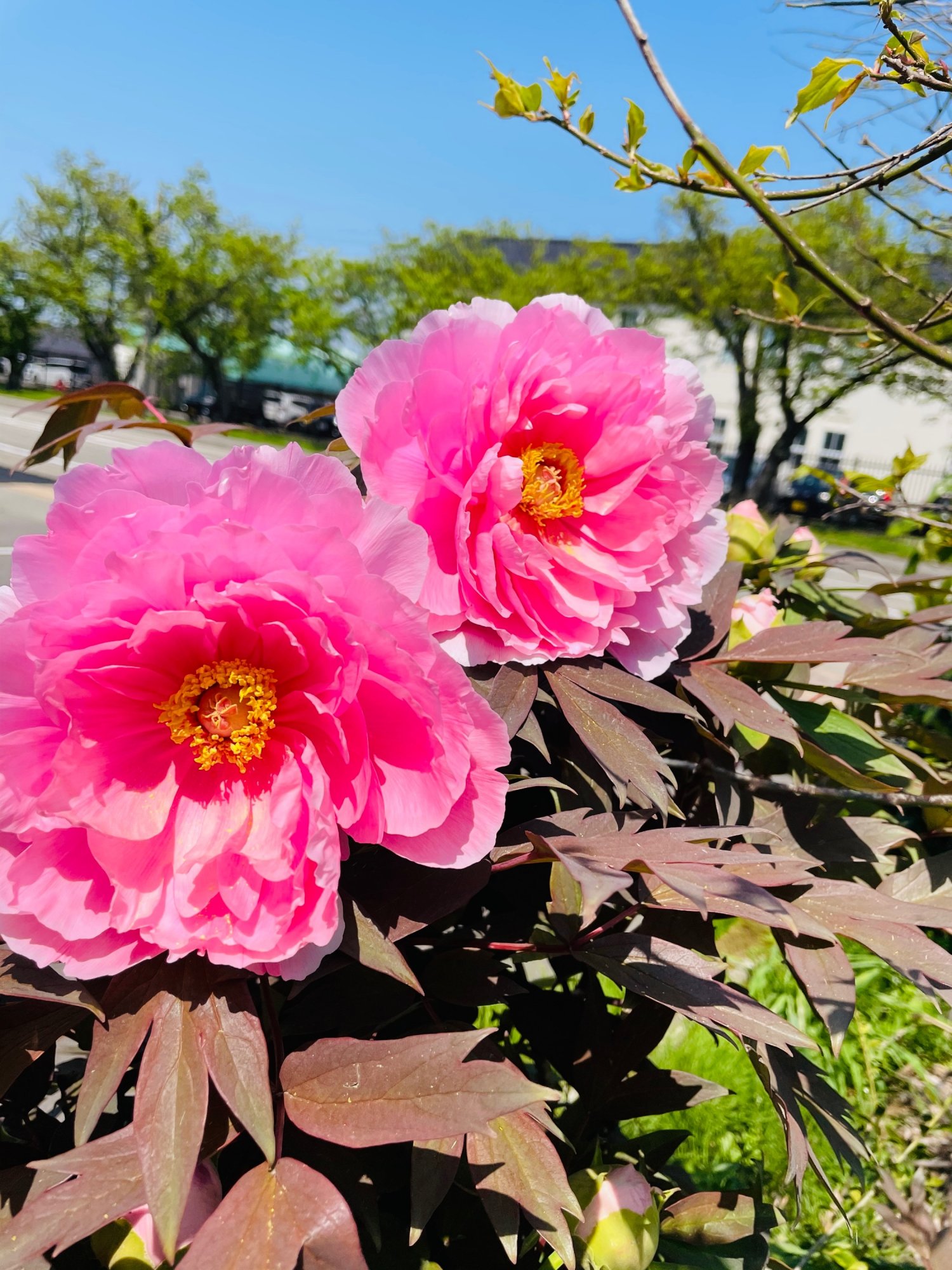 牡丹は一輪あるだけでも存在感がありますが、二つ並んでいるとまるで双子のお姫様のようでした👸👸