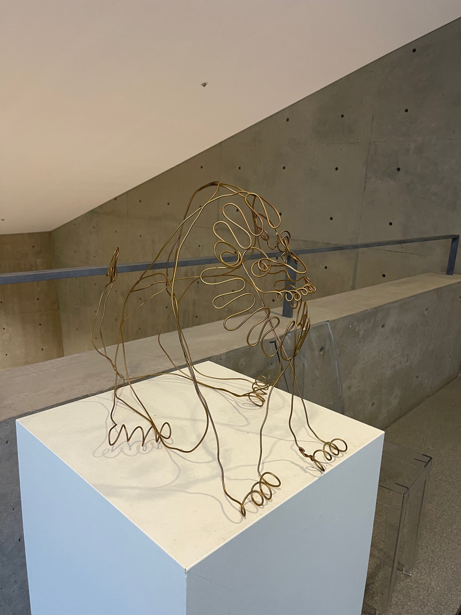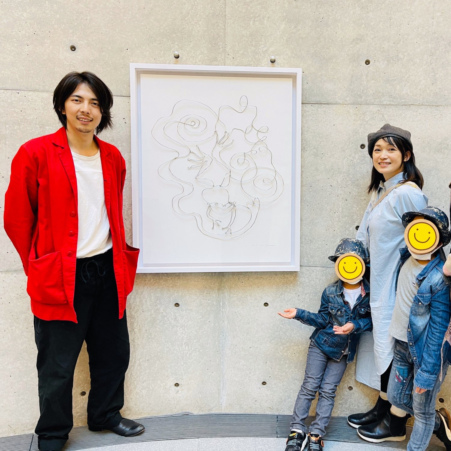 私は個人的に、針金で女性の顔を描いた「LOVE」という作品が好きだったのですが、その作品に込められた大森さんの愛情が伝わってくるようでした(その写真は見入っていたら撮り忘れました…)。子どもたちは針金で作ったお魚やモモンガが気に入った様子。長男のリクエストで、画集にミヤマクワガタを一筆書きで描いてくださったのですが、子どもたちはもう大喜び‼️長男はその画集を大切に抱えながら帰り、家に戻ってから自分なりに一筆書きの練習をしていました😊