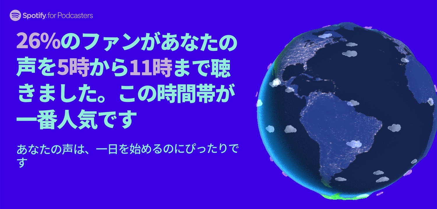 意外だったのは、ポッドキャストって夜に聞かれている?と思っていたのですが、一番聞かれている時間帯は「朝5時から11時」の時間帯なんですって!(全体の26%)結構朝に聞かれているんだ…ということが分かって「へぇ〜!」って思いました。朝のウォーキングや通勤時間、家事が終わってホッとした時間なんかにお聞きいただいているのかもしれませんね。