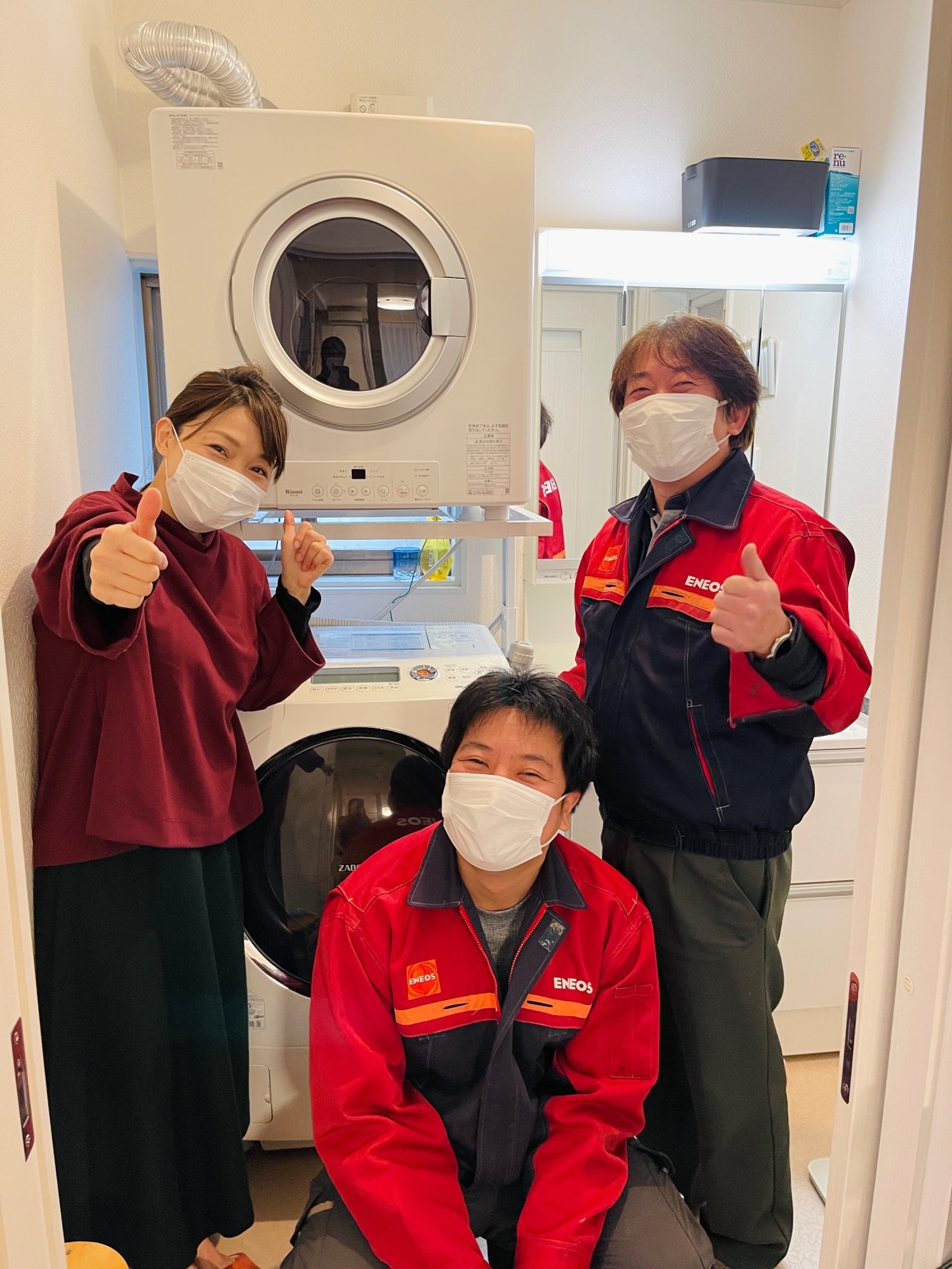 ということで、ピカピカの「乾太くん」を前に記念撮影☺️これからお世話になります🙏今日も金沢は雪模様で、乾燥機を使わないと洗濯物は乾かせません。「乾太くん」が来てくれて、お洗濯がどんなふうになったのか…私なりの感想をまたこれからポッドキャストやSNS、ブログでお伝えしていきますね。