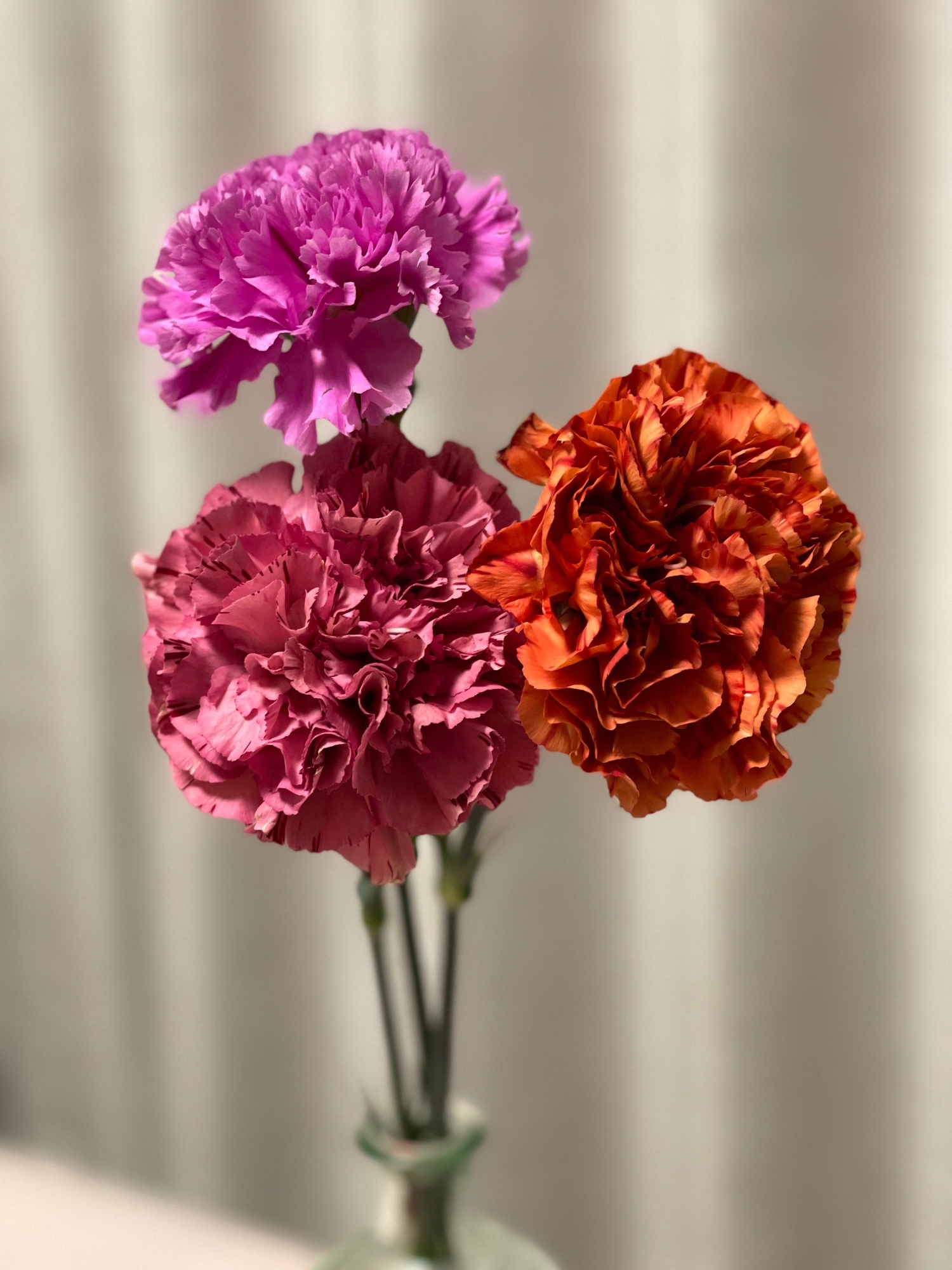 その日の夕方、子どもたちと一緒にお買い物へ出かけたんです。そうしたら「ママちょっと待っていてね」と言われて、休憩所でしばらく待っていると…長男次男がトコトコと戻って来ました。そして「はい、これ」と言われて手渡されたのが、カーネーション❣️💐サプライズでお花をプレゼントしてくれたのです😂そのカーネーションは三本。一つは長男から、一つは次男から、そしてもう一つは娘から(笑)ということでした。色はそれぞれ違っていて長男次男が好きな色を選んでくれたのです。