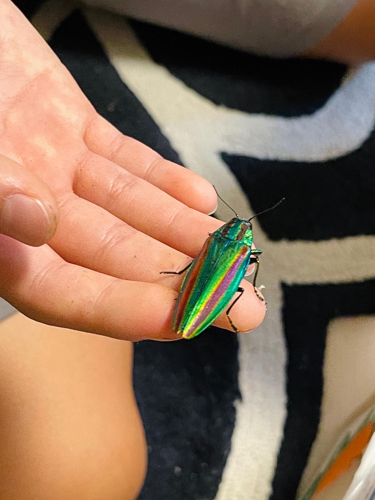 見せてくれたのですが、本当に宝石のような虫なんですよ💎光のあたり加減で色が変わるのです。緑だったり青だったりゴールドのようだったり。あまりにも美しくて見惚れてしまいました😍