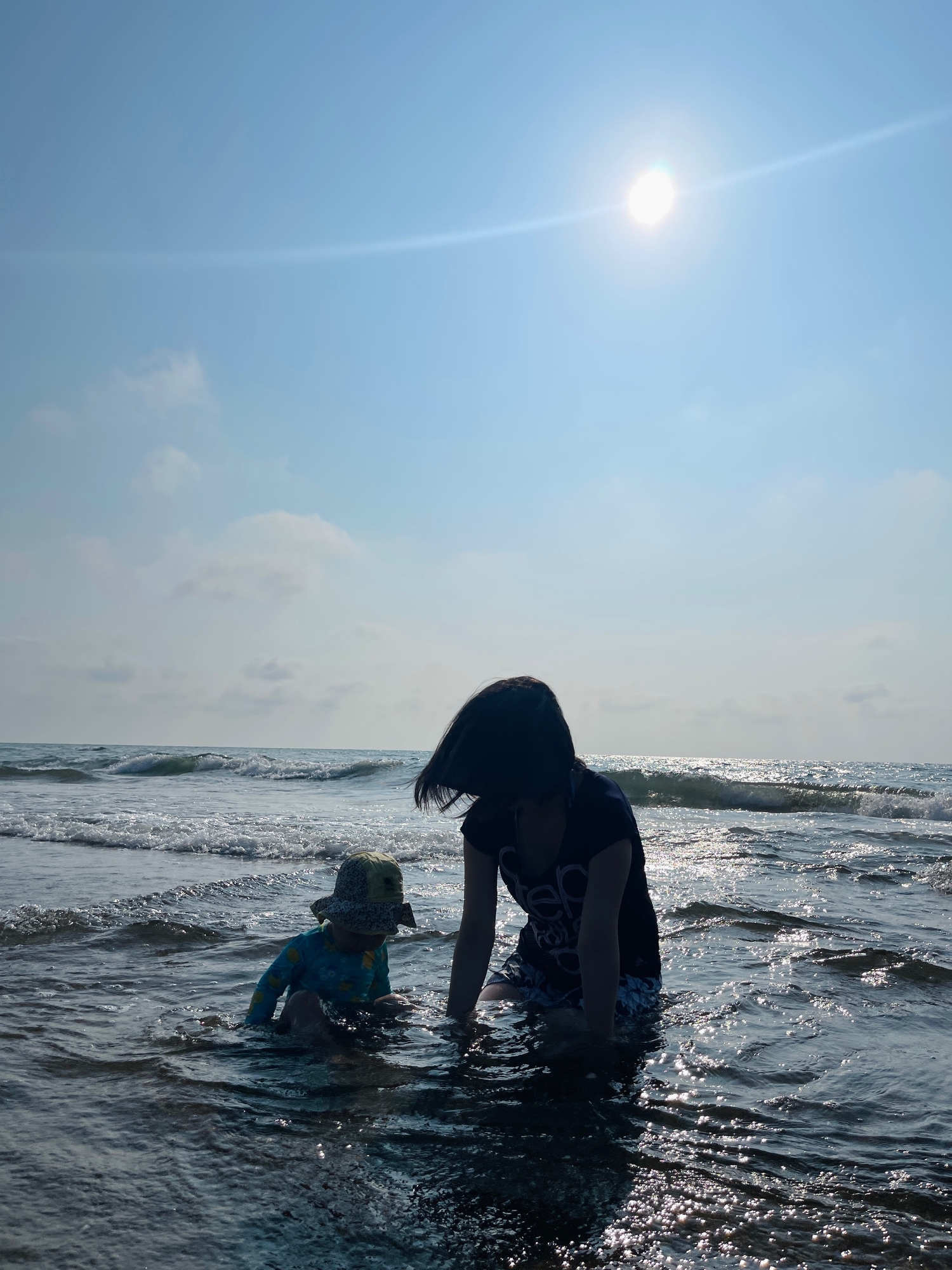 昨年は私に抱っこされて、そーっと海に入っていた娘でしたが、今年は浜辺からスタスタと波も恐れず海にどんどん突進していくではありませんか😆大きな波がきても喜んでいて🌊お顔に波がかかっても全然泣かず、楽しんでいる様子。海が好きな子なんでしょうか?とにかく娘の成長を感じました😊
