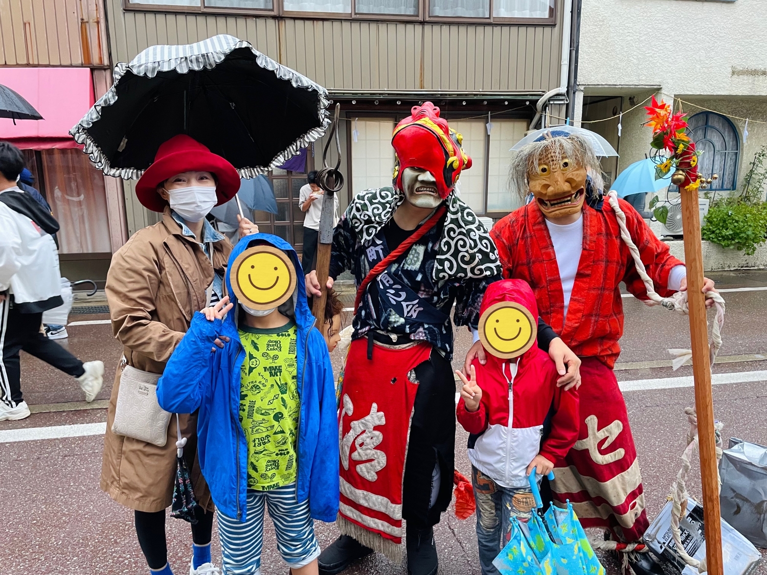 それから名物の「ばくめん」と言われる妖怪?も登場❗️三年前は長男も次男も半泣きで逃げ回っていたのに、今回は「ばくめんって人だよね?」という覚めた発言が😂記念撮影できるほどに成長したのです。息子たちも大きくなったんだなとつくづく実感しました。
