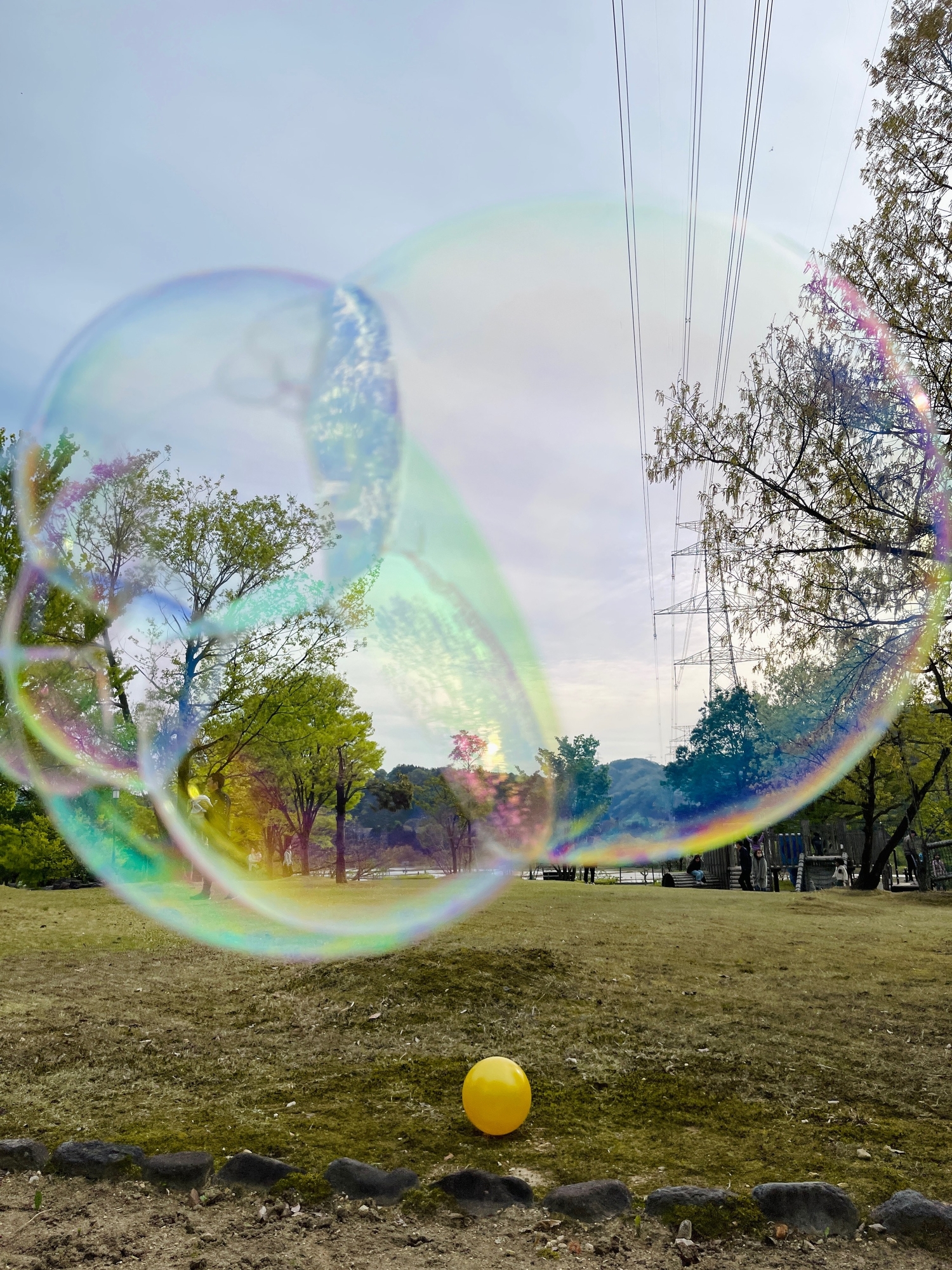 ※写真は先日白山の公園に行った時のもの。シャボン玉をして楽しみました!