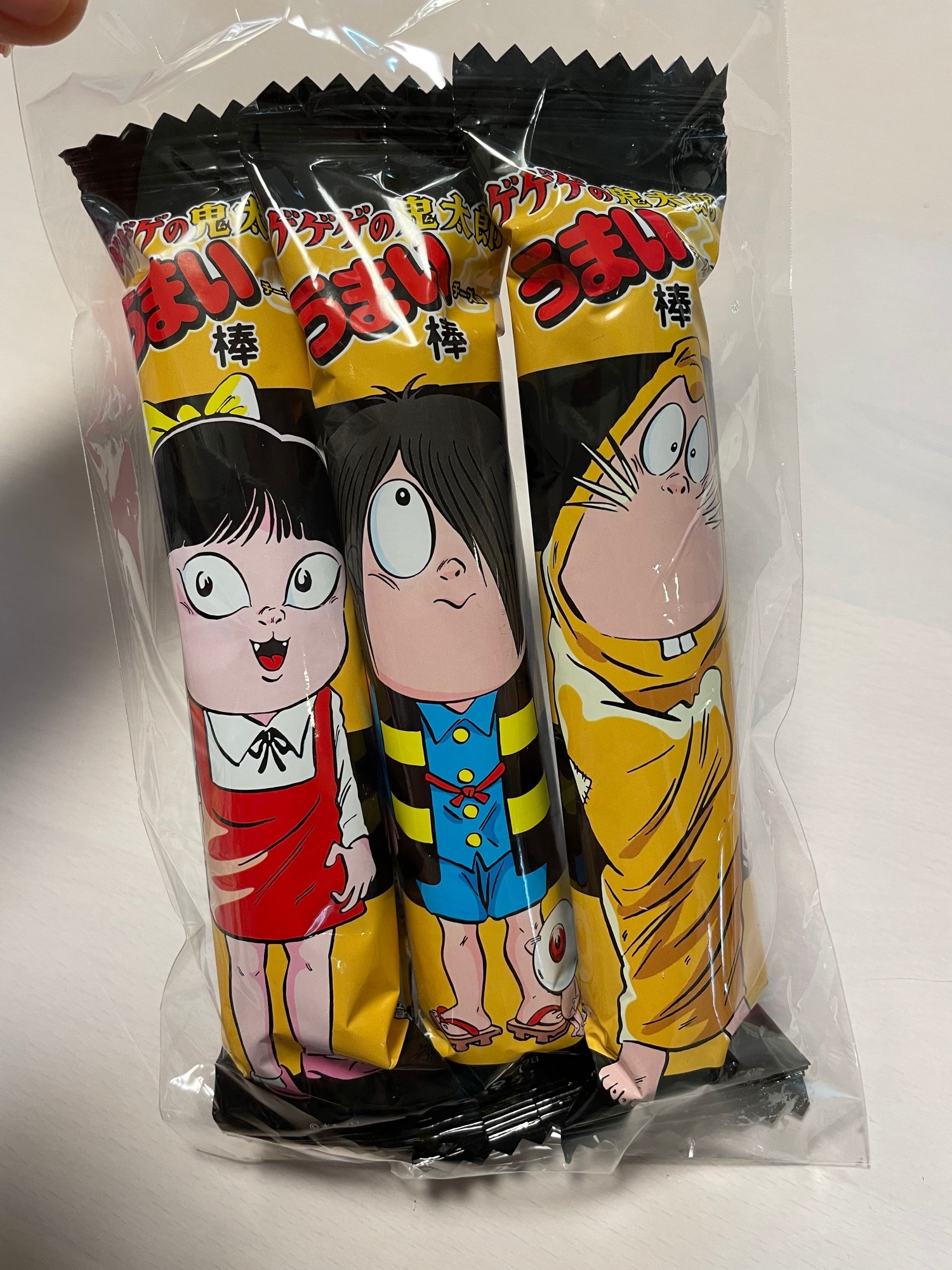 ところでGW初めに帰省したお友達から嬉しいお土産をいただきました。息子たちにといただいたものですが、長男次男が大好きな「ゲゲゲの鬼太郎」の「うまい棒」😍水木しげる先生の作品にすっかりのめり込んでいる息子たちは「すごい❗️何これ❓」と歓声をあげていました。