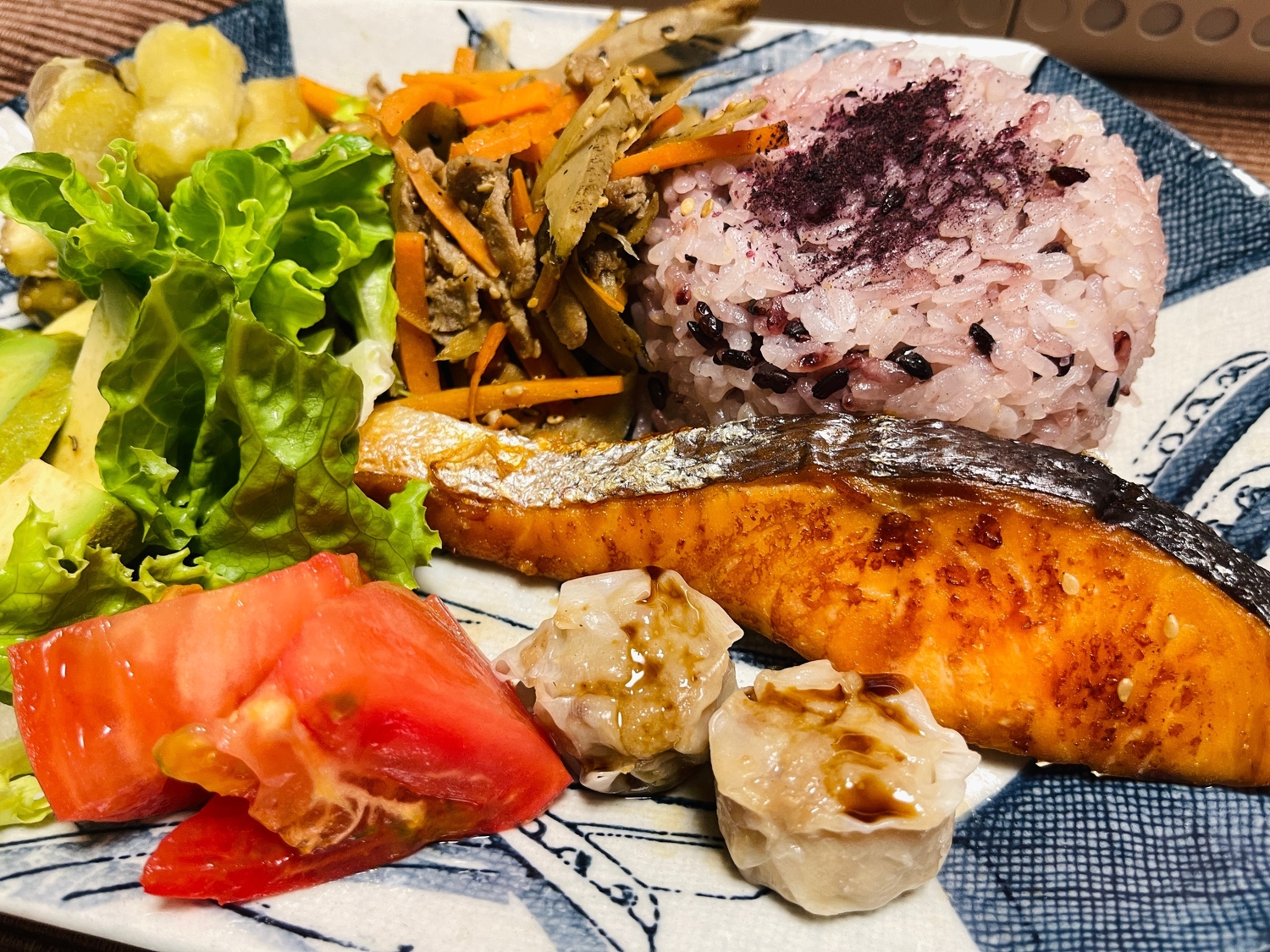 ※写真は今夜の夕ご飯。野菜もお肉もお魚も…バランスよく食べて体力を養いました♪