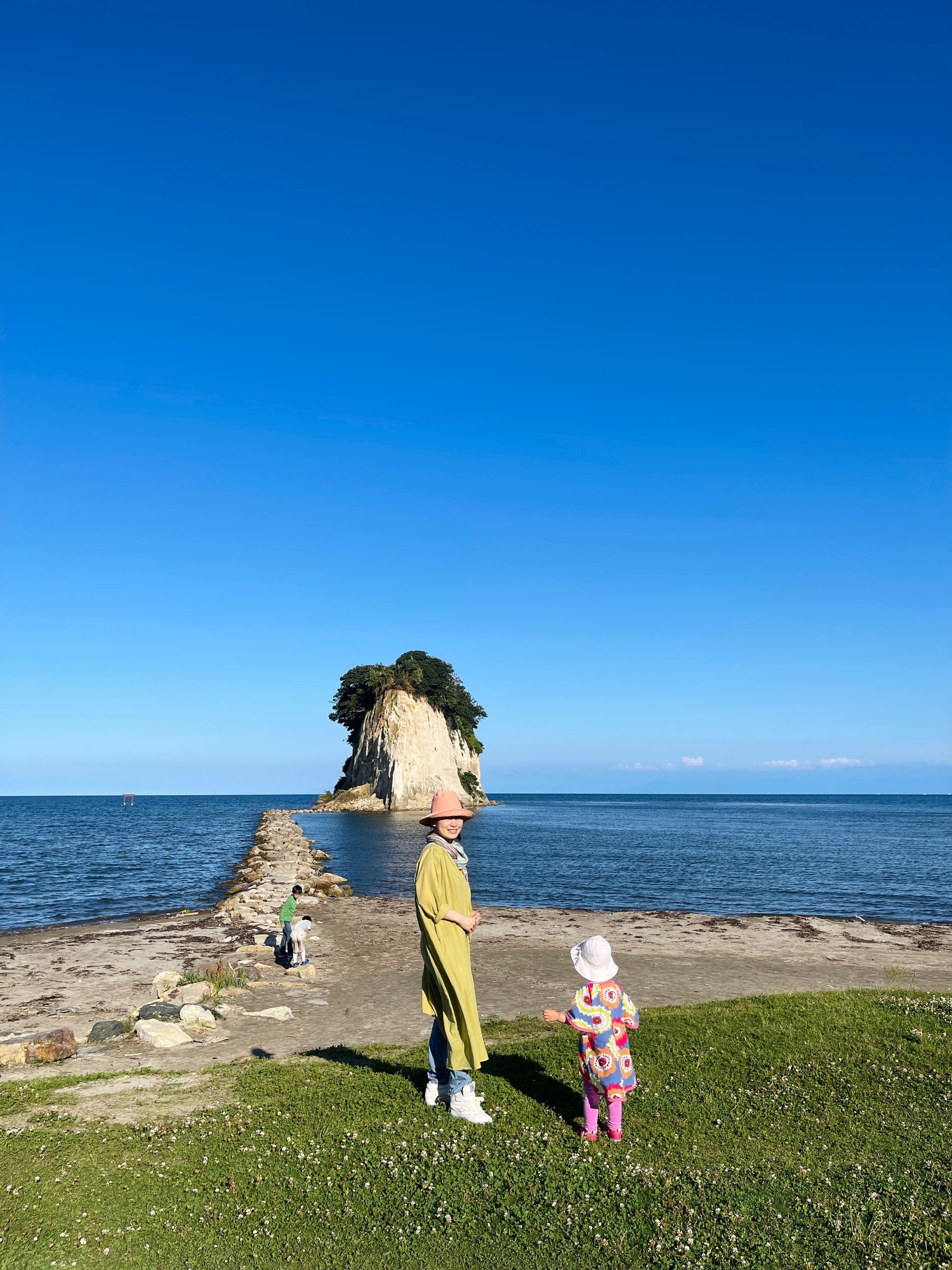 金沢へ帰る前に、大きく崩れた見附島へ行きました。しばし、青い空と海を前にして、子どもたちは大はしゃぎ☺️こんなに素敵な場所をずっと後世に繋げていけますように…これからのシーズンは綺麗な珠洲の海へぜひ遊びにきてくださいね。それでは、また~👋