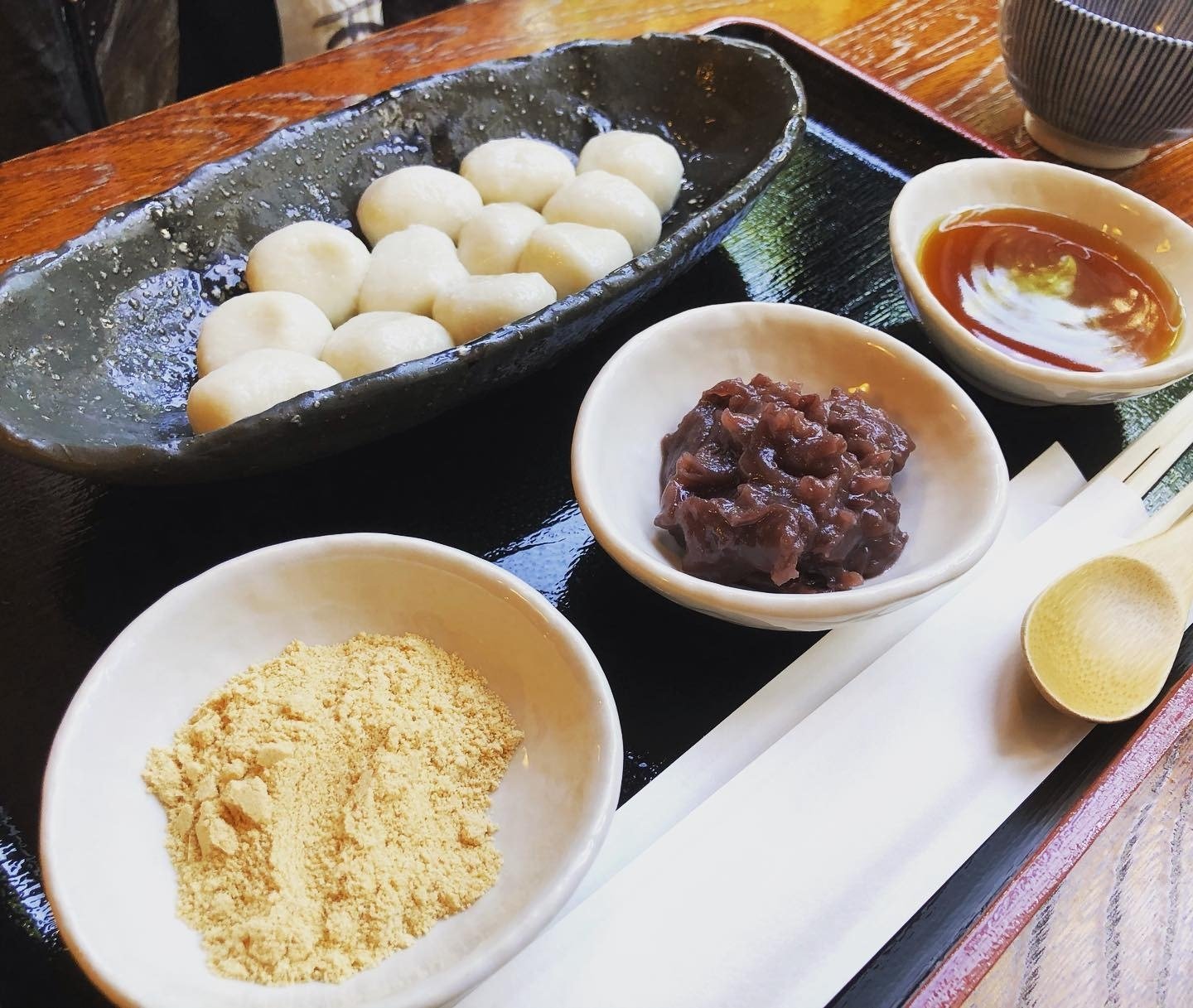 まずは、生麩甘味処「不むろ茶屋」の白玉生麩をいただきました🎑普通の白玉とは違う食感と味わいを楽しみながら、幸せな時間を過ごすことができましたよ☺️